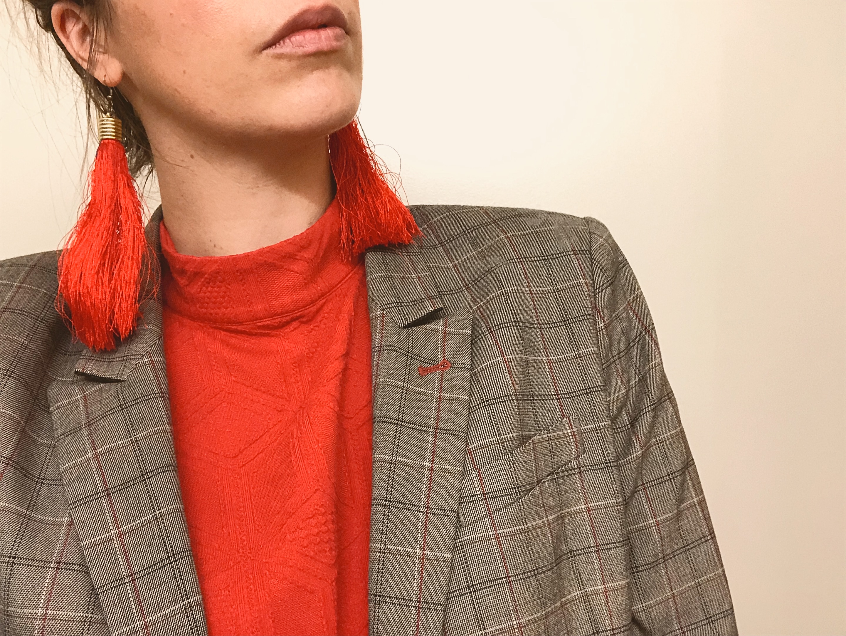 This sweater (the actual one I own) was a no brainer. Simple studs. A bold bang. Jeans. Black loafers. People were amused by the sweater. I was amused by their amusement. It is a combo of mariachi, cowardly lion and 70s shag carpet. Perfect.