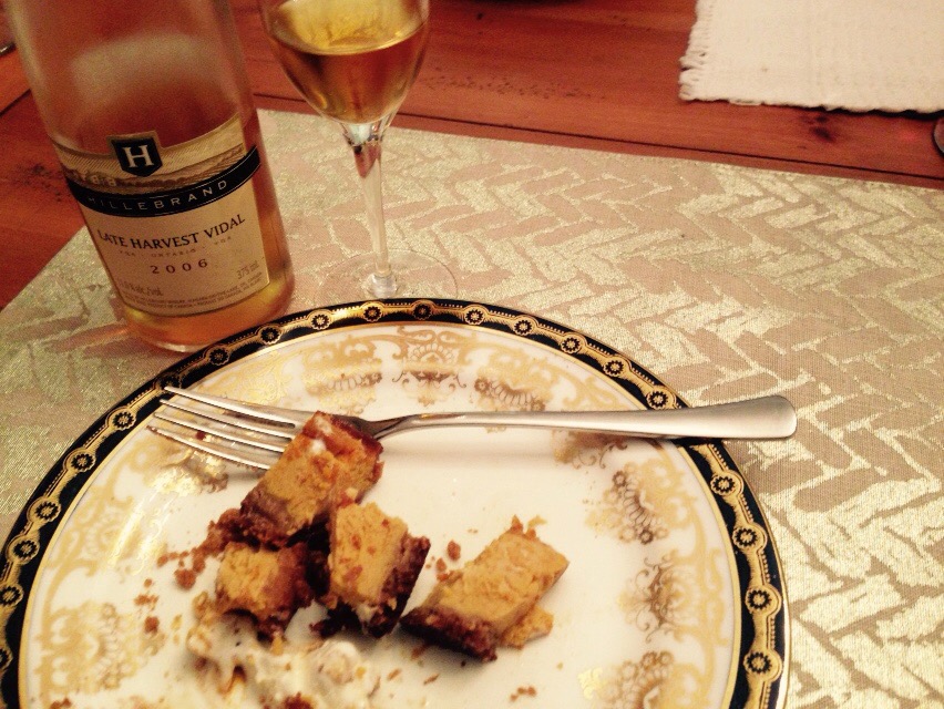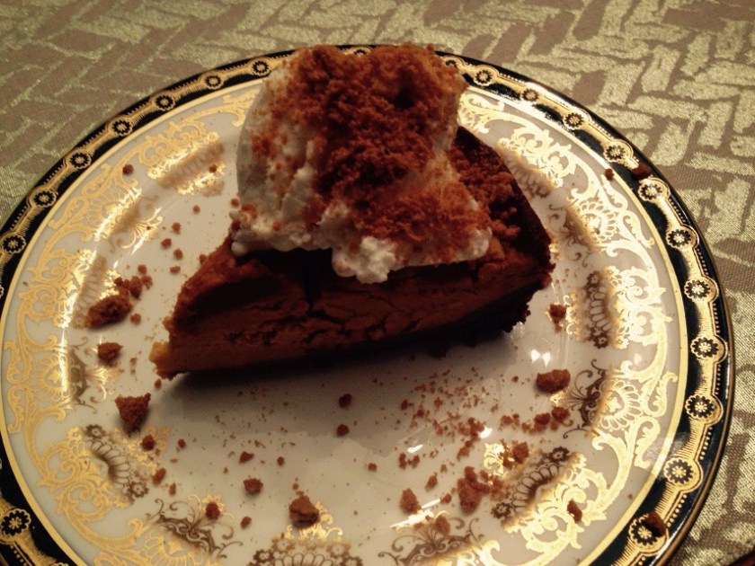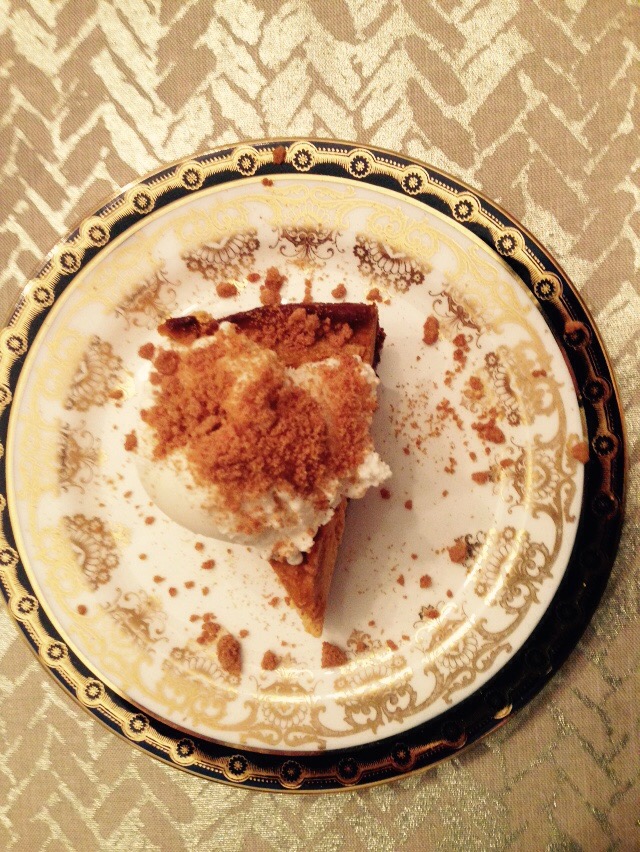Pumpkin pie cheesecake (made with tofu) a la mode.