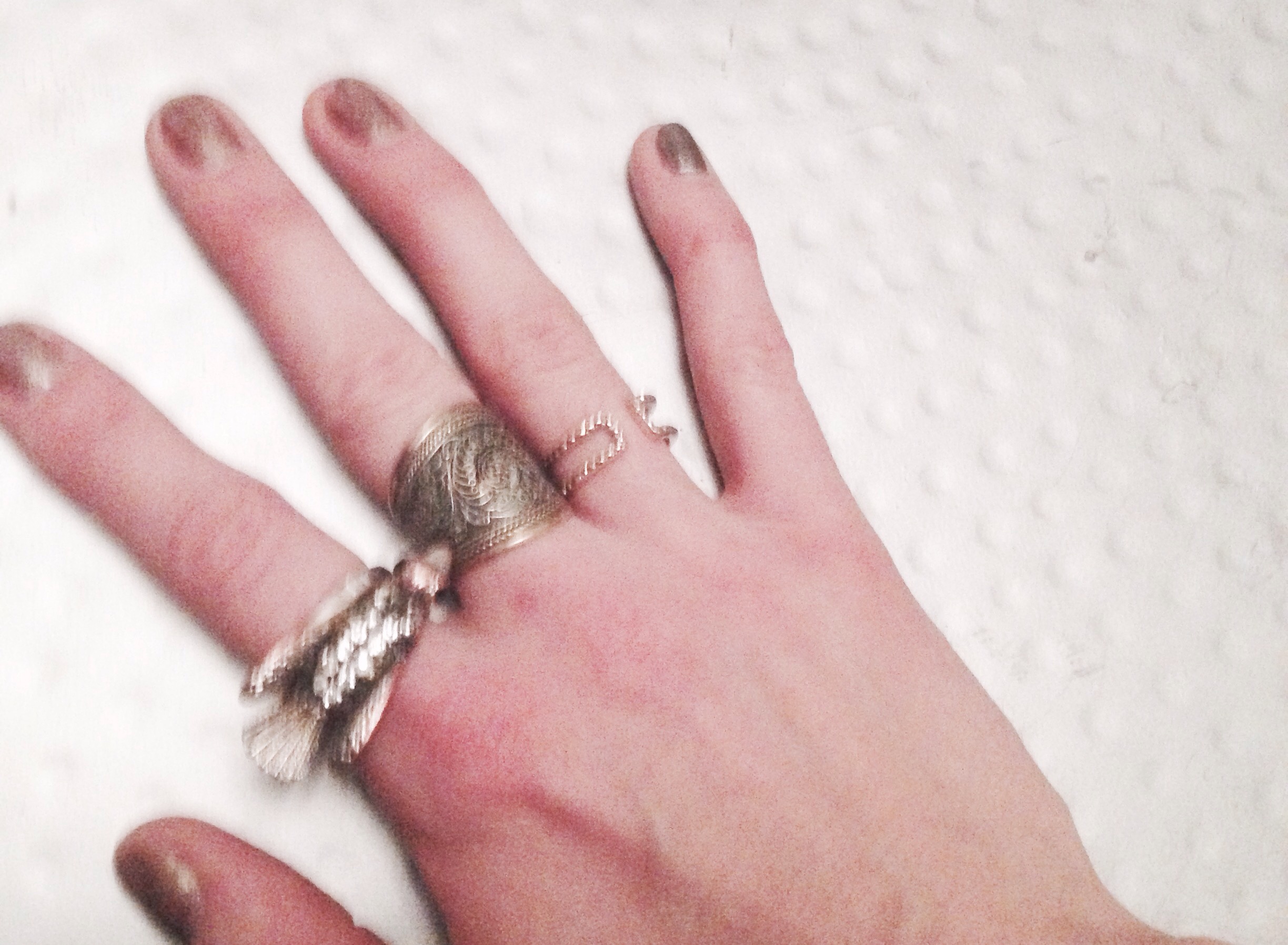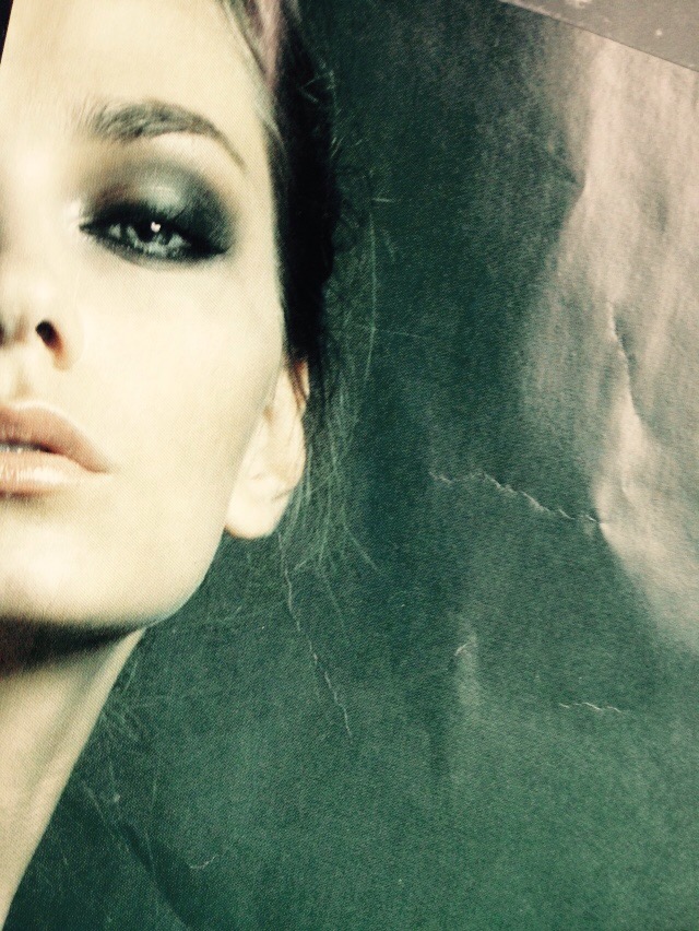 Makeup: a gold smokey eye and pale pink lip. Inspired by my magazine perusin, I added a hint of gold to the inner corner for aime sparkly and a hint of vintage bling, and hair to match – a bit teased up and sixties looking but softer.