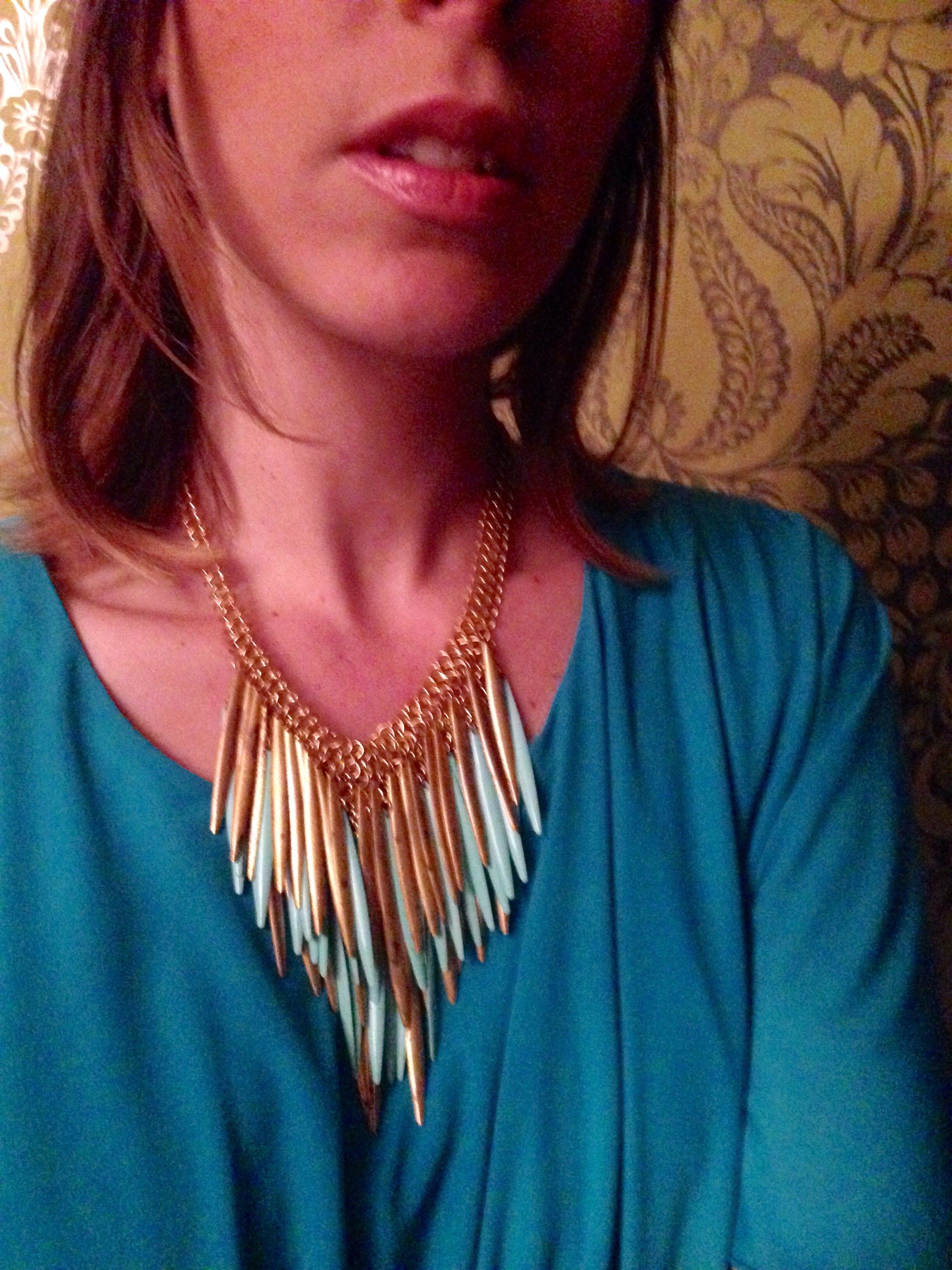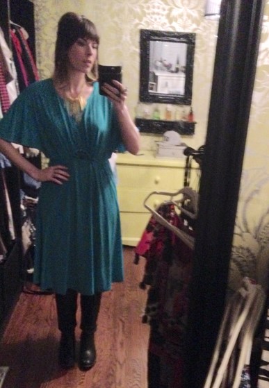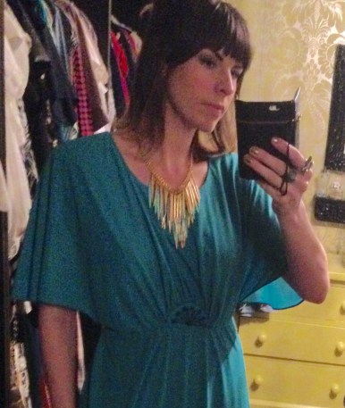 Itinerary:Get ready. Vintage dress, with bat wing sleeves and a YYZ Imports necklace.