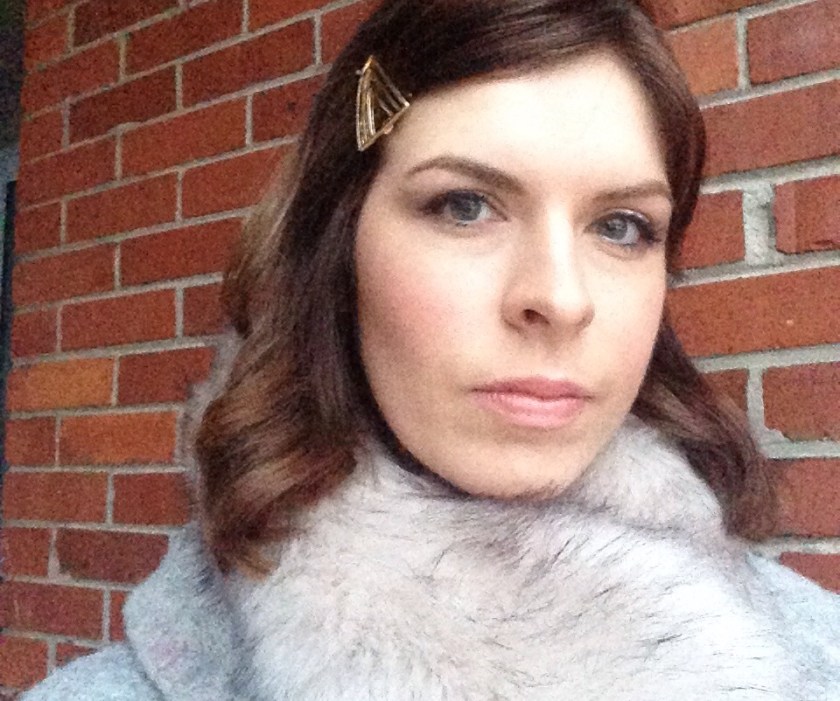 Pale lip and some blush to banish the early a.m. blahs. Wrapped up for the winter morning and ready to go.