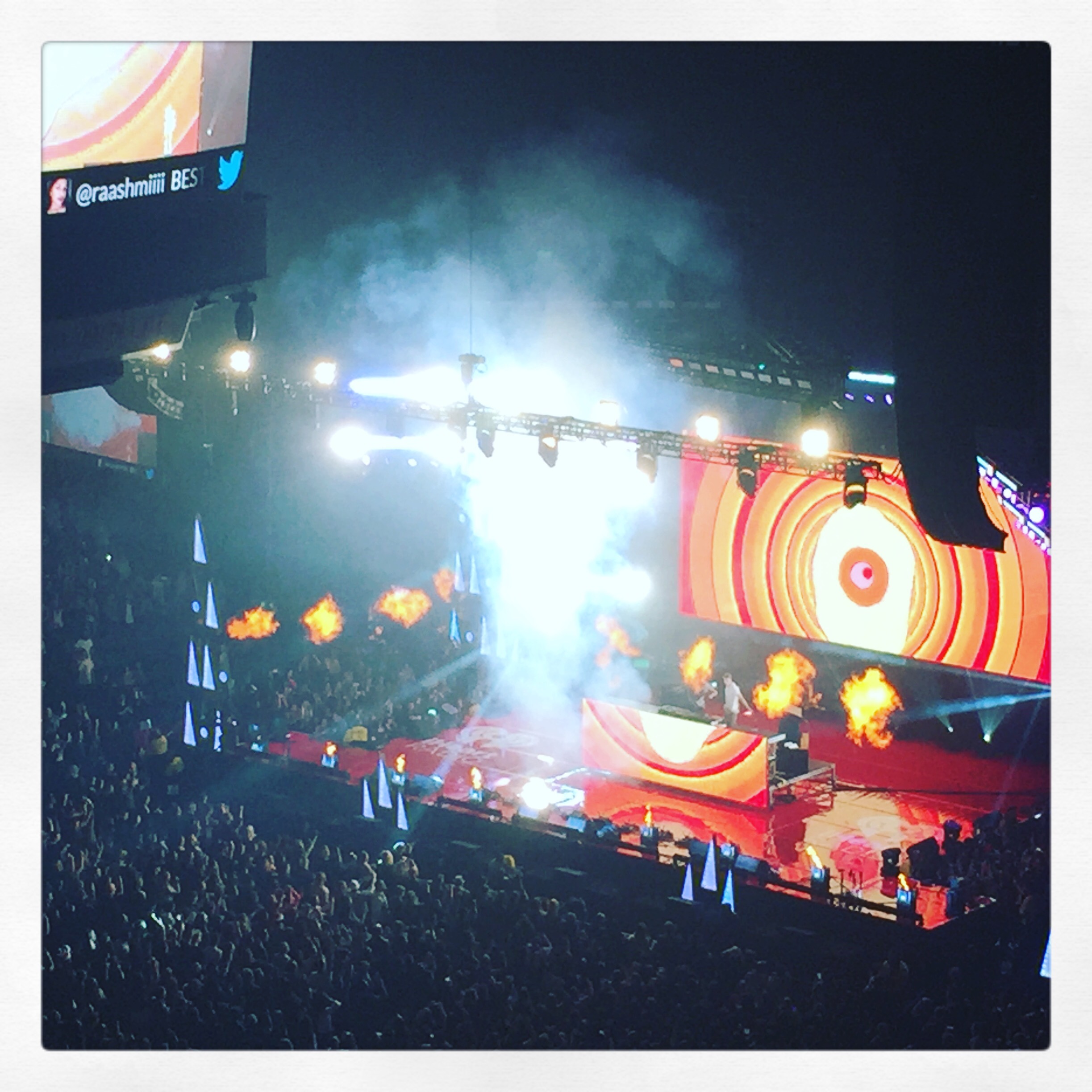 Next up was the Chainsmokerz – I was puzzled by how many of their songs I actually know, and the pyrotechnics, state shenanigans and presence pretty impressive, despite the fact that I am mystified by their ridiculous lyrics about pulling the sheets off of a stolen mattress from Boulder…