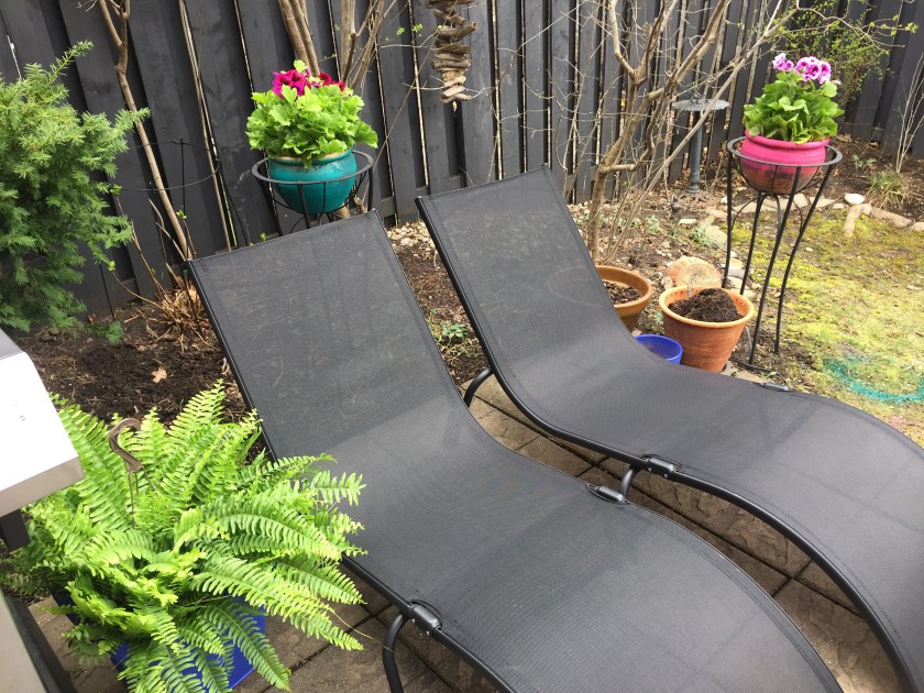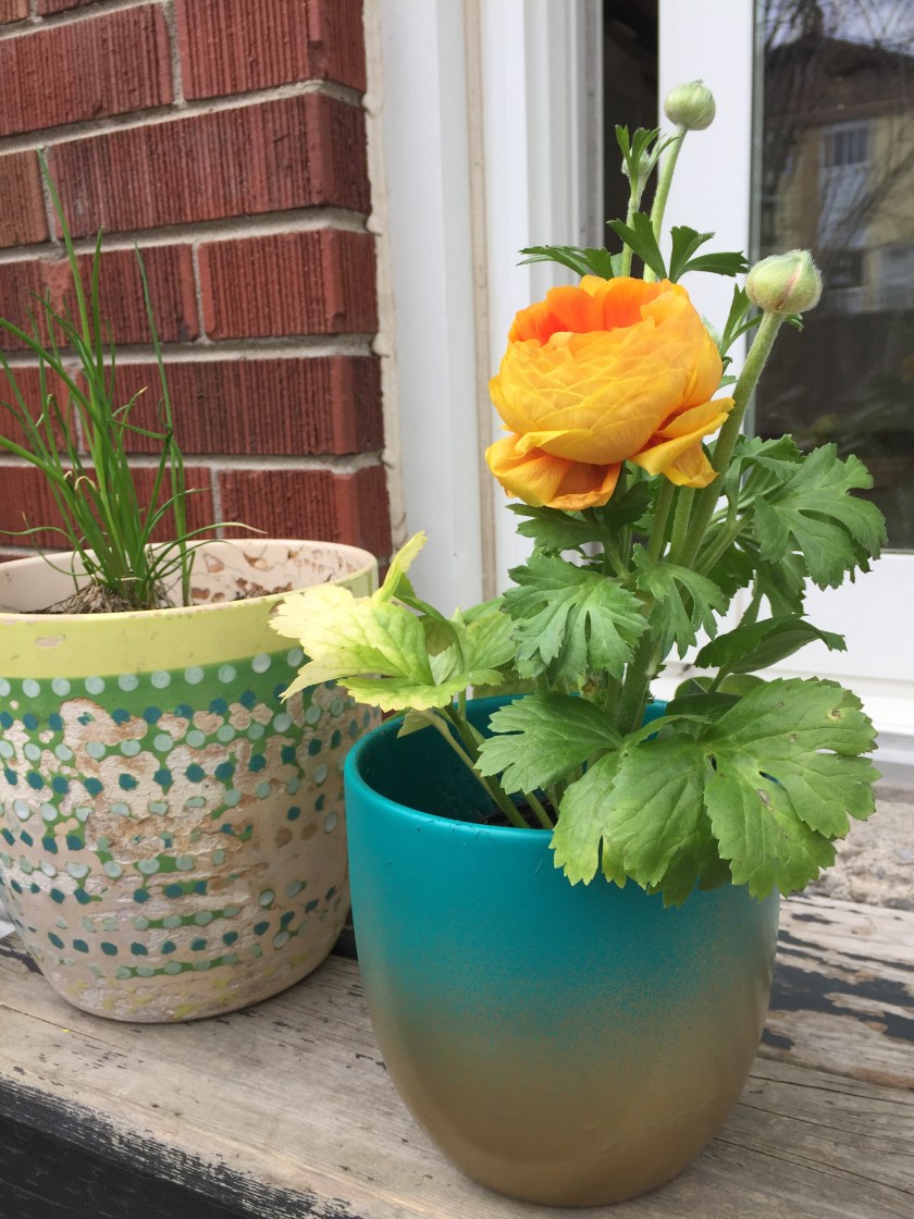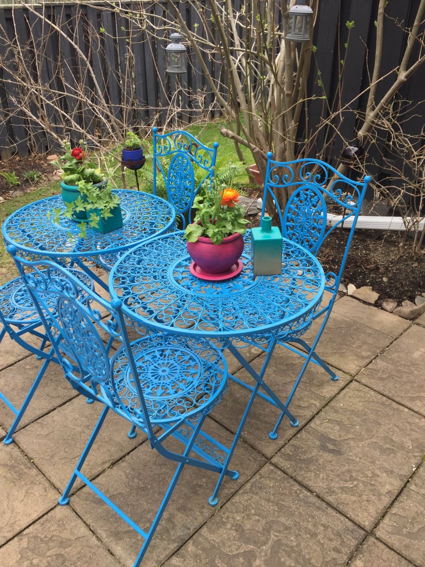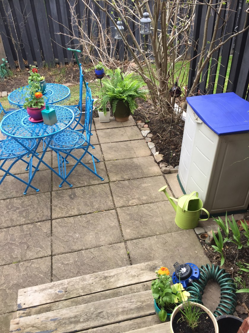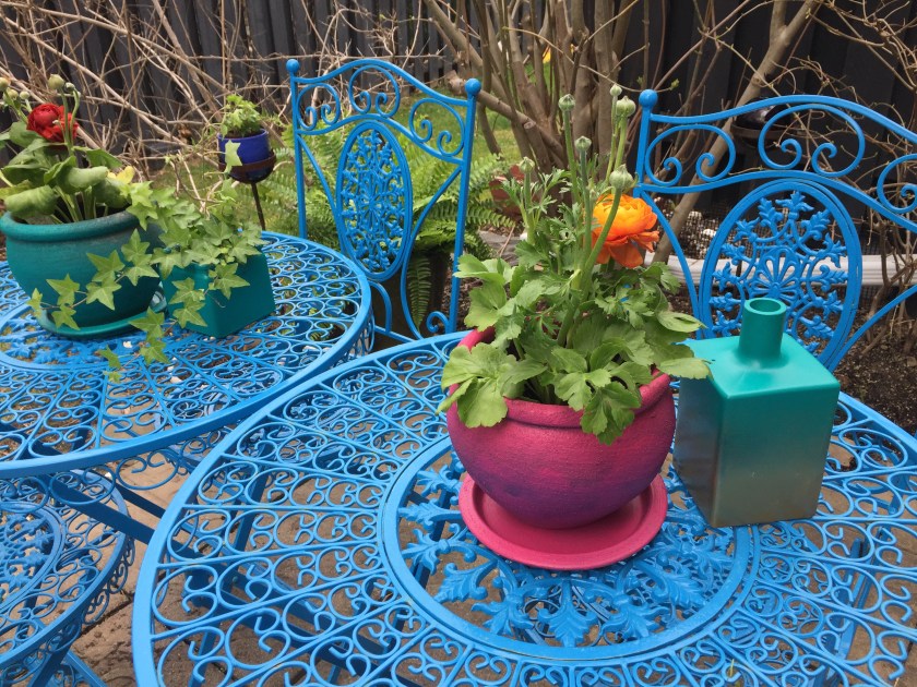 This is phase one. After borrowing my sister in law’s spray paint, attacking some old, tired-looking pots and getting a few starter plants to help me see it coming into focus, bright and boho yard transformation is well-underway!