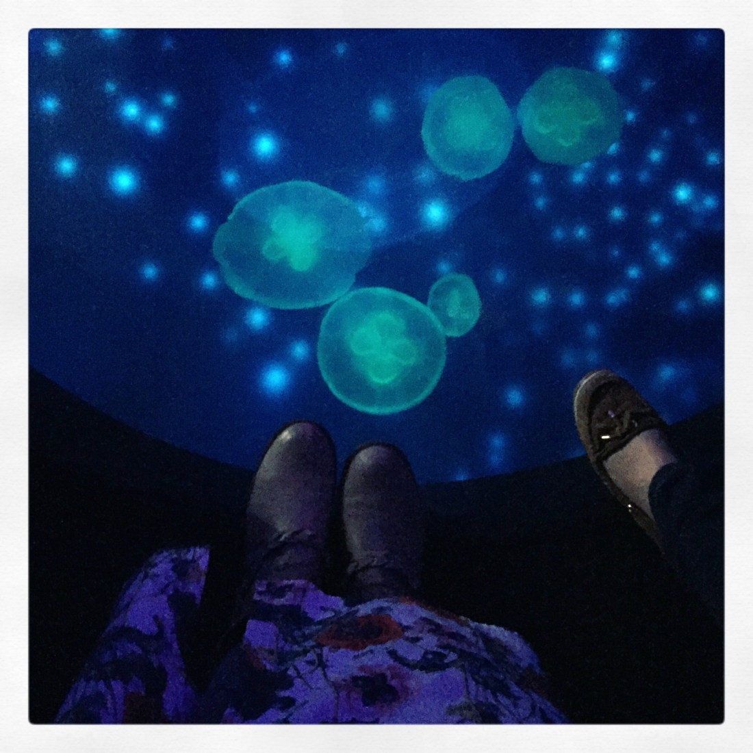 Layered up and button fronted with a shaggy vest for a trip to the aquarium.