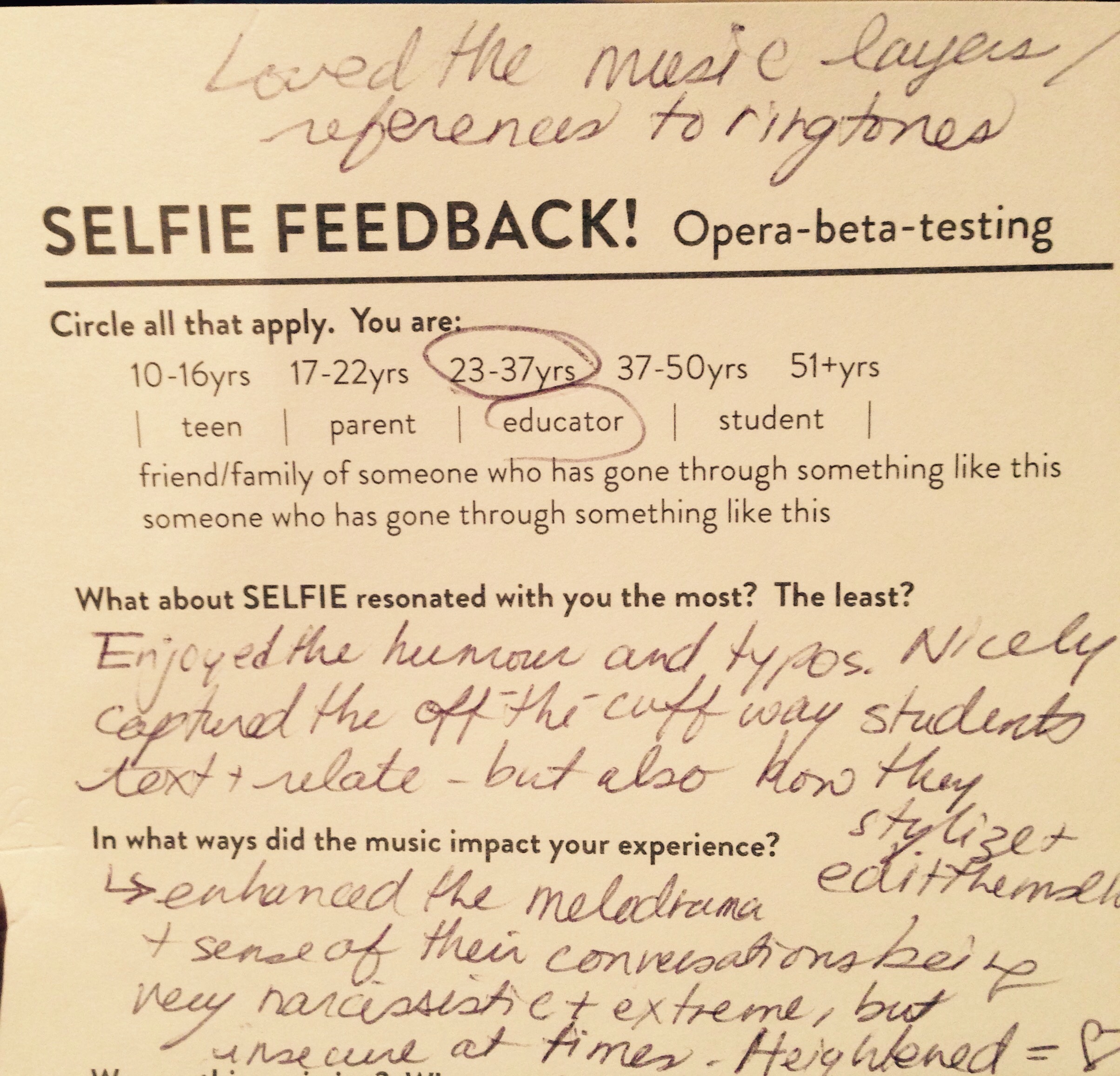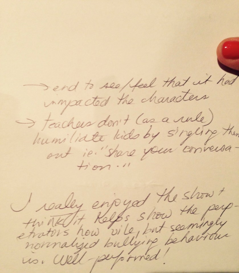 As a workshop for the piece, the director and writer were seeking feedback and asked us to offer up our thoughts post-show.