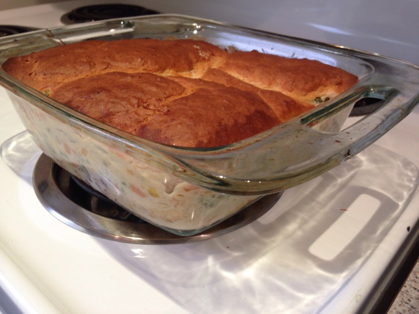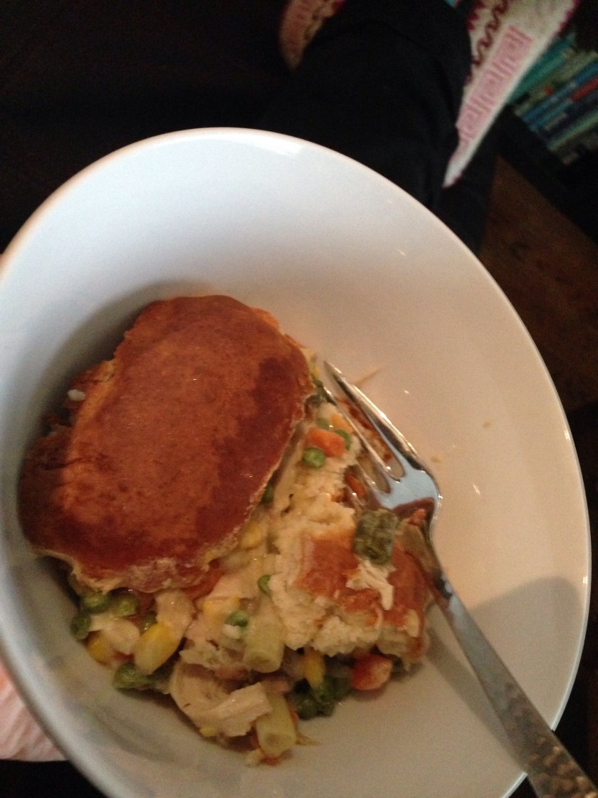 Whenever we roast a whole chicken we try to use every last bit. This week we took all the good bits of meat that were left and made a super easy pot pie.