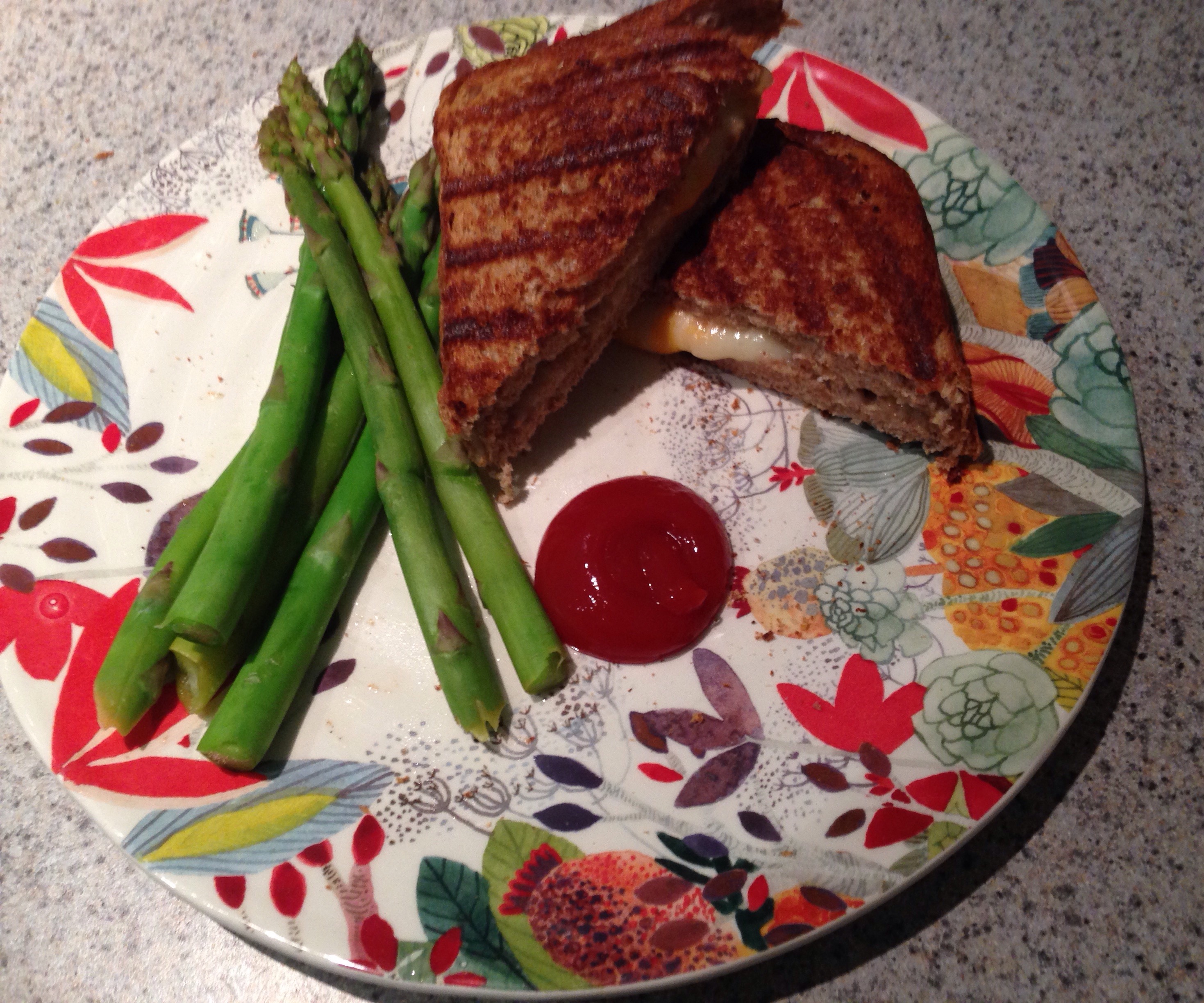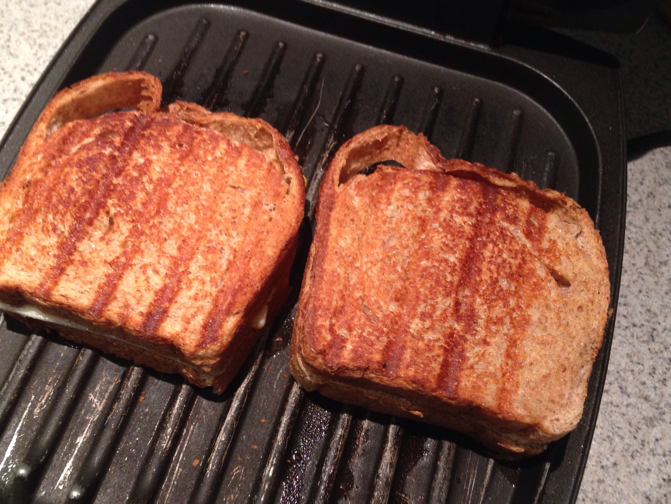 Pear. Blue cheese. Cheddar. Arugula. Red pepper jelly. Apple jelly. Meet George Foreman.