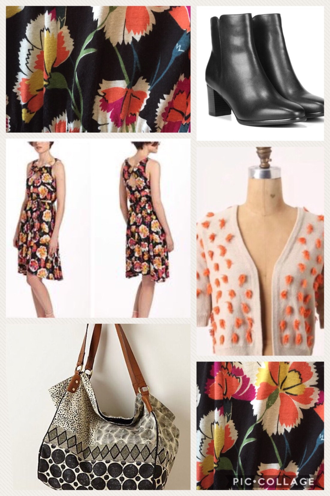 But today’s inspiration was an easy tie-waist dress, from Anthro, with pretty cutout details; paired with booties, a cute bag, and embellished cardigan, I was ready for the slight drop in temperature. The belly was definitely racking up style points with the above-the-bump bow.