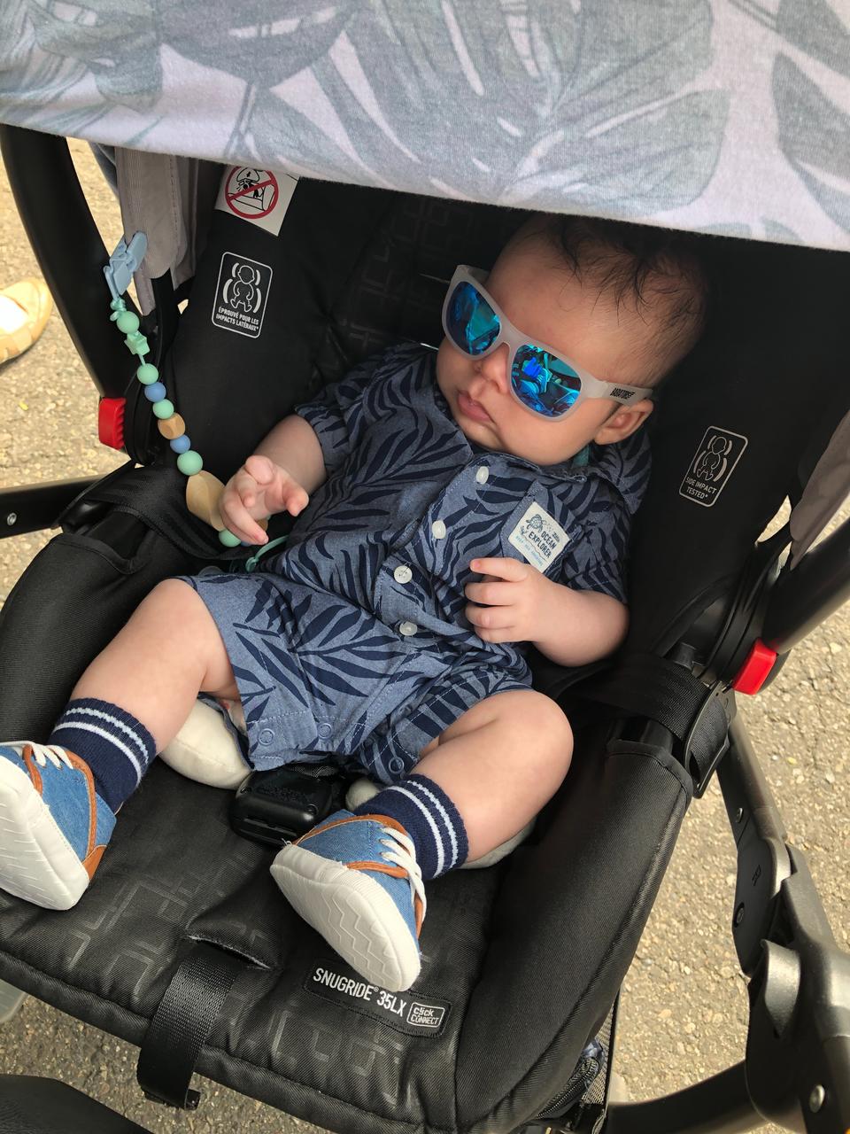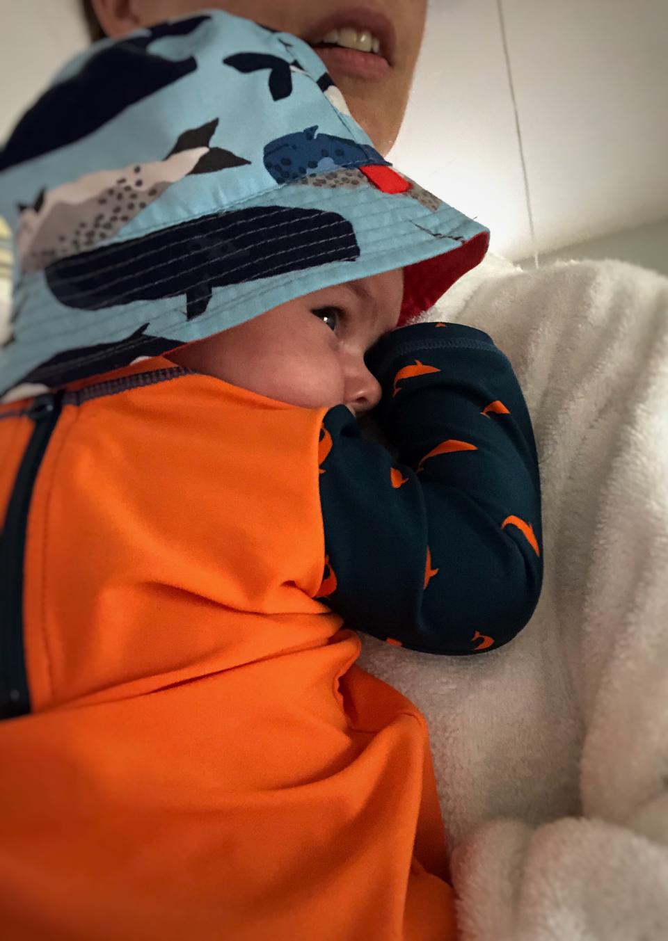 -used coconut oil as sun protection (but kept him totally out of sun/shaded/screened)