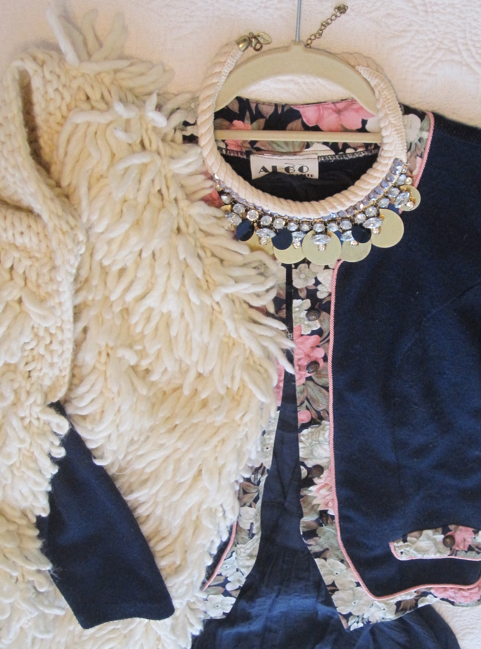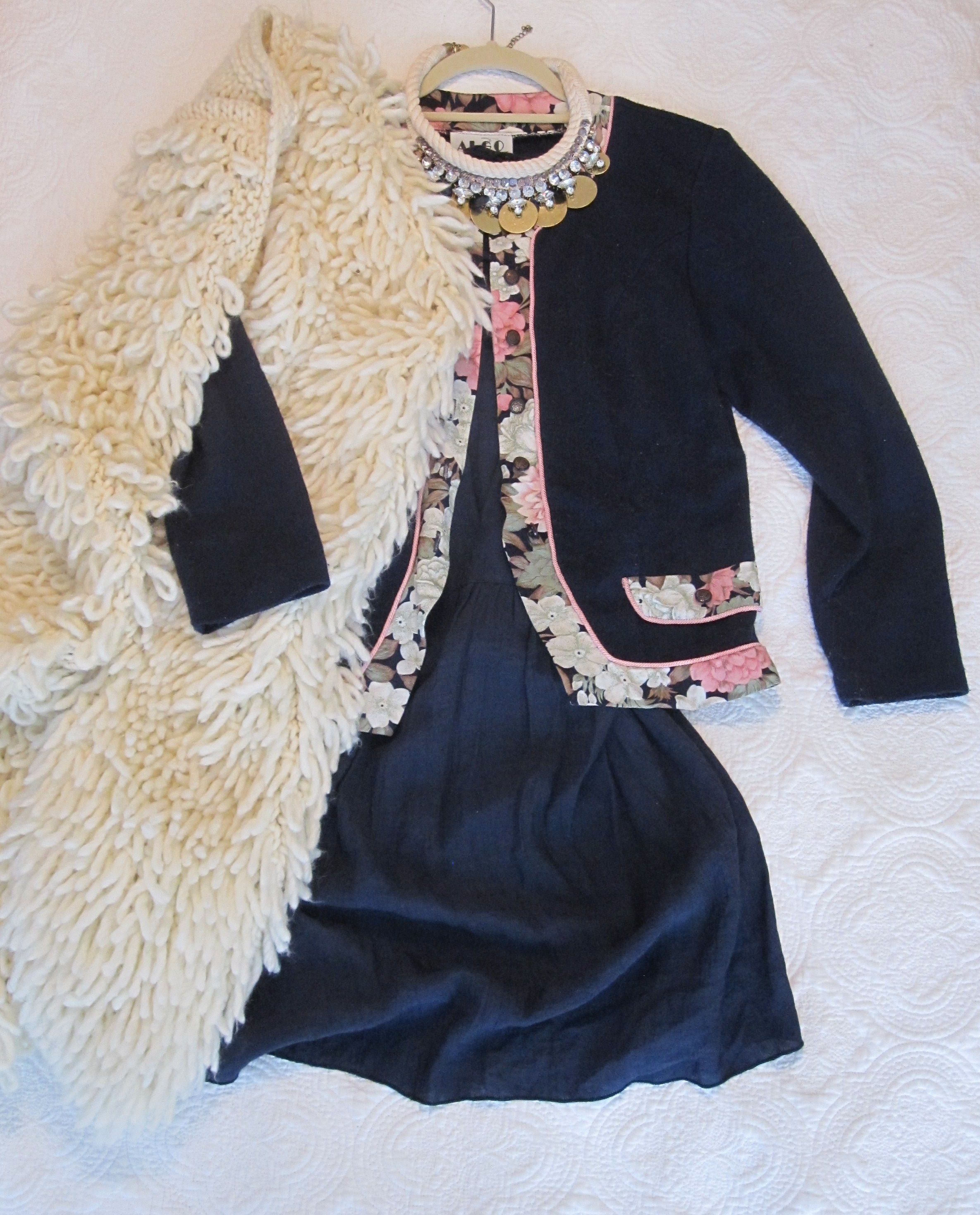 Knit floral-edge jacket from a play that I choreographed. The costumers gifted me this piece after the show wrapped.
