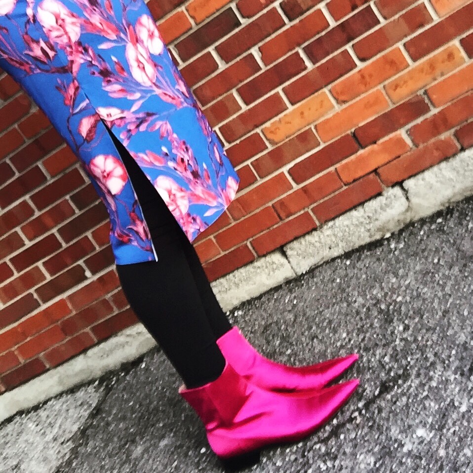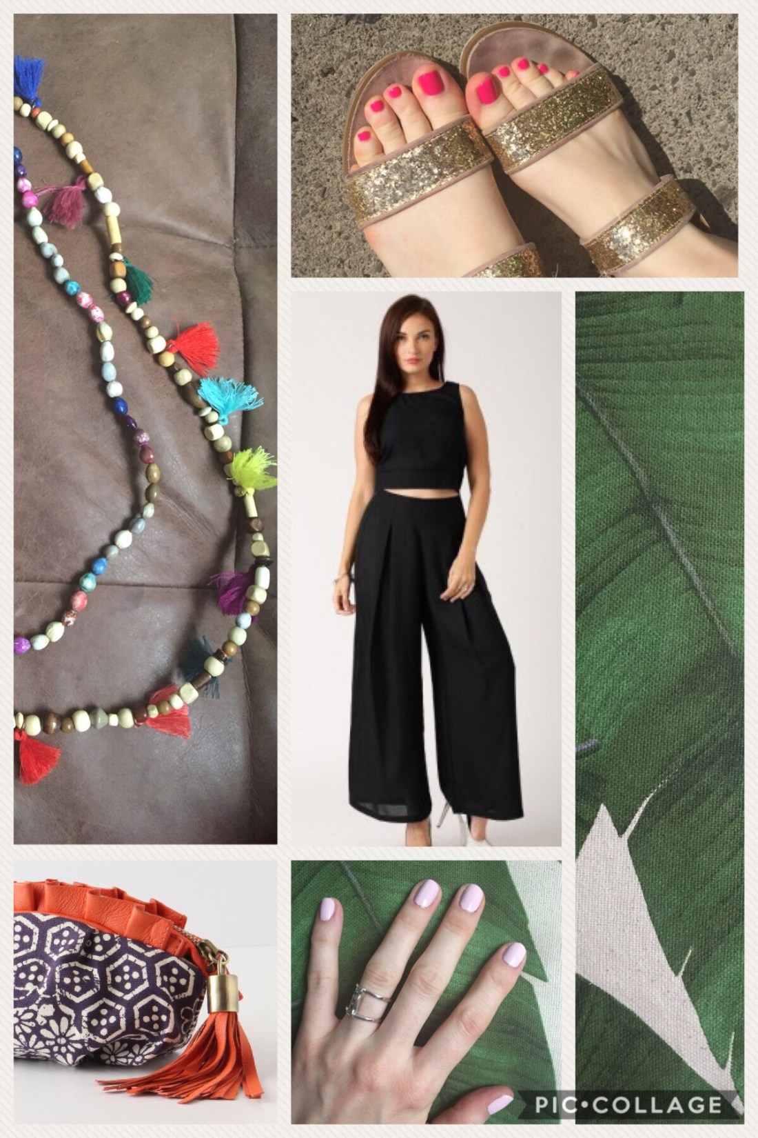 Palazzo pants in a smooth, flow material, black top. Sparkly flatforms and a fresh mani-pedi. I have been enjoying the tassel necklace I made after a trip to Portugal, inspired by the colourful jewellery I was seeing throughout our trip. It was the perfect rainbow of colour to accessorize for pride month … discreetly. And nothing makes me feel more entitled to a bit of pampering (hands and feet) than being targeted by a homophobic little twerp for being out at my job.