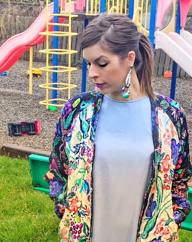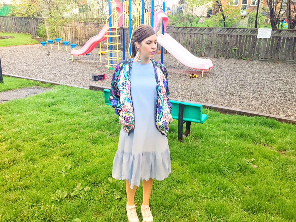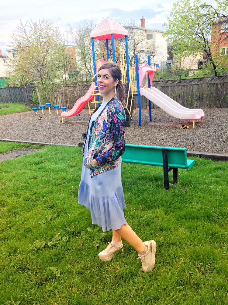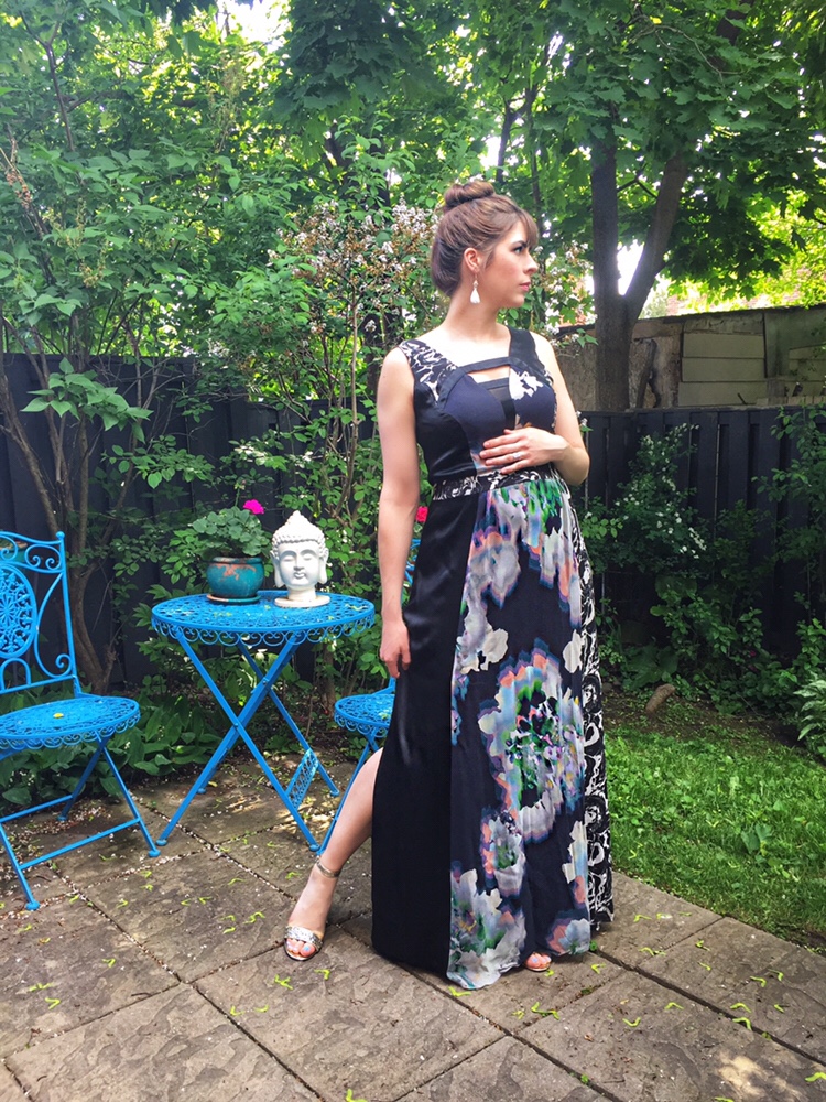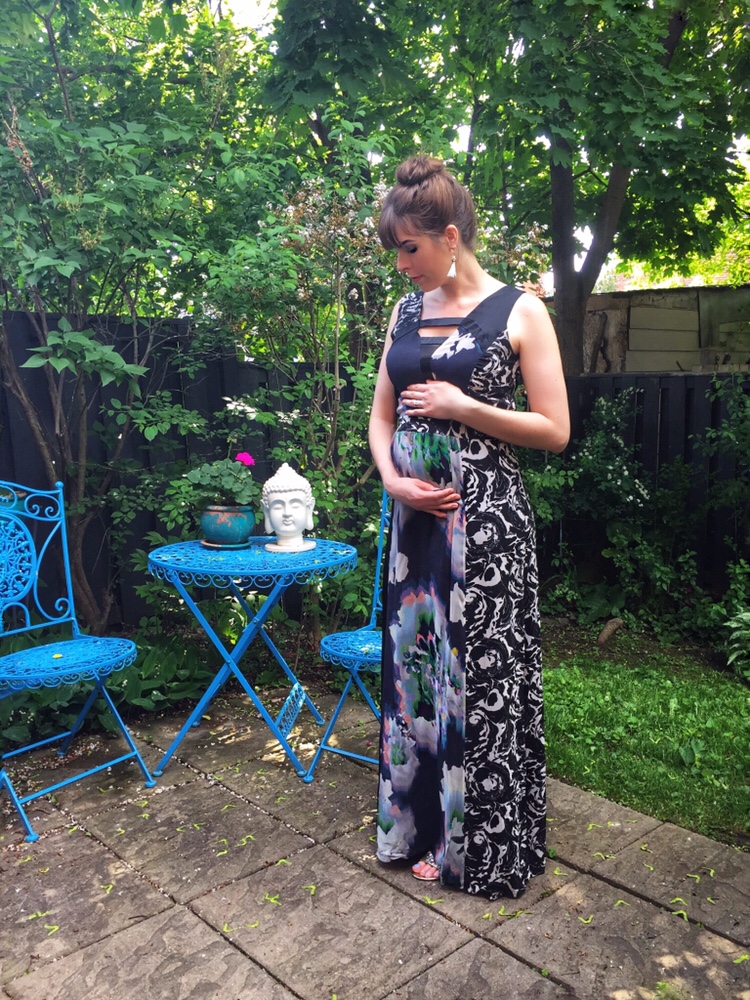 This Anthropologie dress was such a steal. Regularly $470, I scooped it up for $89 on sale a few seasons ago. I altered it and fortunately it still fits over this gradually expanding bump.