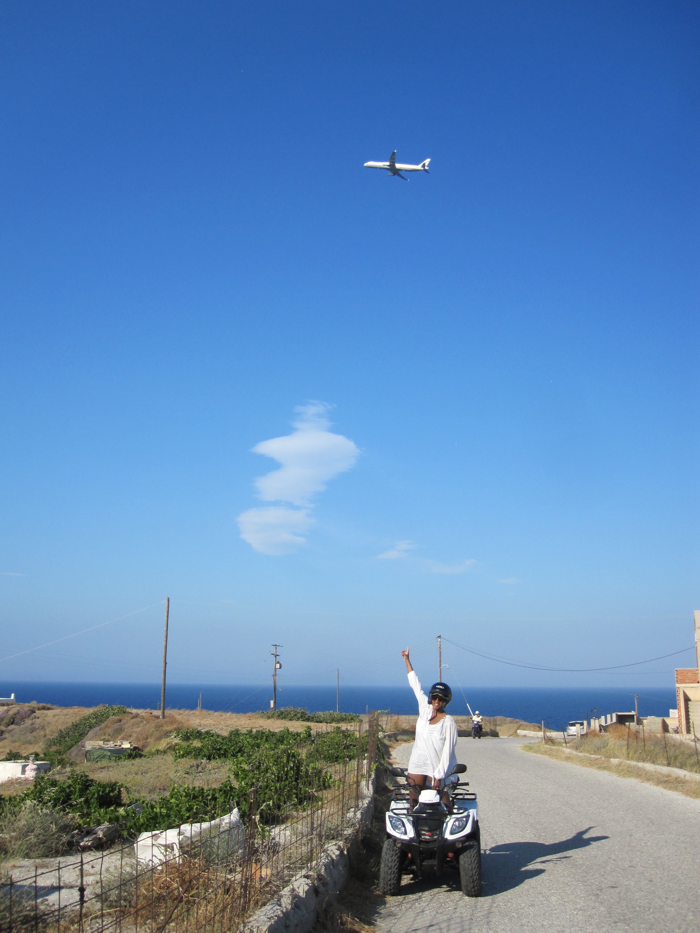 The story took a sad turn, as we found that the paperwork needed to come from Naxos and we’d need to go to the harbour to pick it up in Fira. We thought, due to the language barrier, that we were meeting a person at a desk or office down at the harbour. We did not understand that we were meeting a letter, held on the boat, that would not be left IN Fira unless in our own hands. We narrowly missed the Blue Star Delos as it left the dock, after a twisting and turning ATV ride down the side of the caldera to the port. The port police officers, a group of macho, chain-smoking uniformed men, seemed genuinely moved as my eyes brimmed with tears and they registered how sad this moment was, after radioing the vessel to confirm that the letter was on board… heading back to Naxos. We were departing the next morning and still didn’t have a confirmation about flights for Gaia, with our time difference and the question of her documents, age and timeline of the vaccines. It seemed like a sign, but there was also some VERY good news.