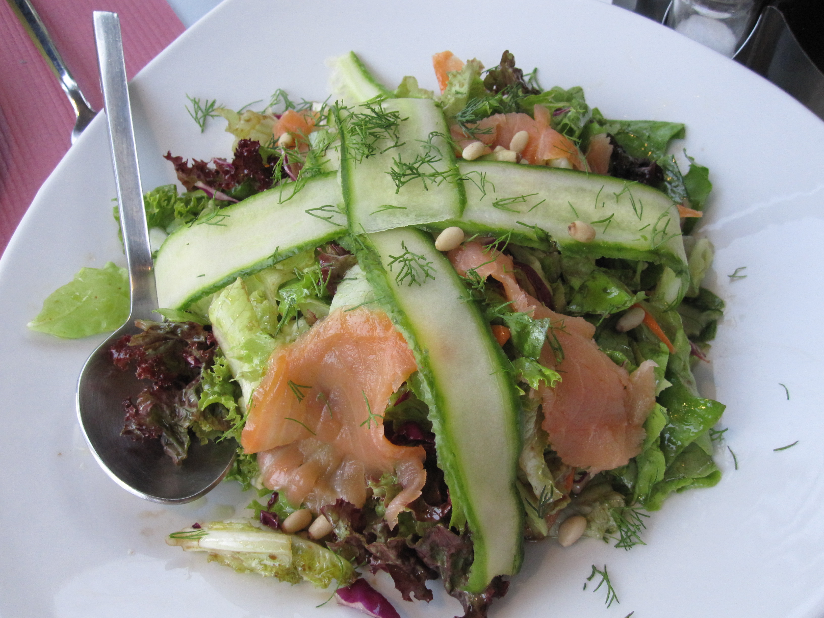 She wound her way through the legs under the table and found her way straight to my lap. She was a gorgeous strawberry blonde, with the ears of a spaniel and eyes to melt your heart. She was friendly, but shaking. Clearly hungry. We pitched in to get her some food and she cuddled with us. On our friend Jas’ lap, I joked as I took their picture “family photo.”