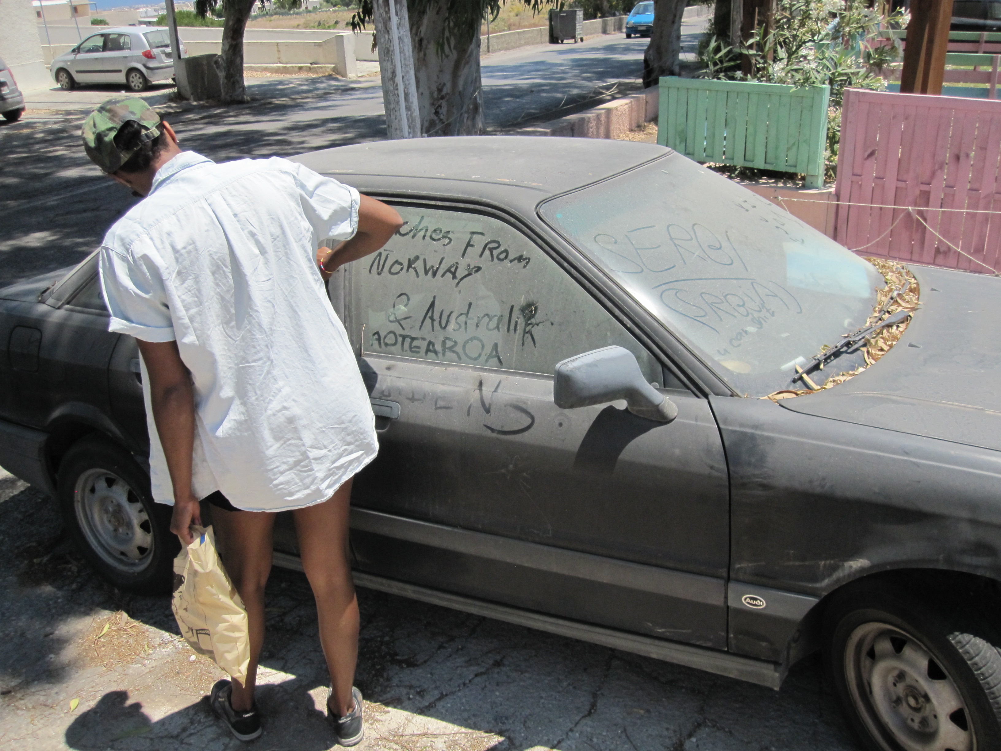 The front desk didn’t recognize her, but put me in touch with Helga, a worker from Santorini’s SAWA http://www.sawasantorini.org/. Allia, my wife, also looked into animal rescue in Greece and quickly received a reply from PAWS Pelion (near Athens); they advised to get her to a vet quickly and try to start the process. We also got the contact for SAWA (Santorini Animal Welfare Association) christina@sawasantorini.org