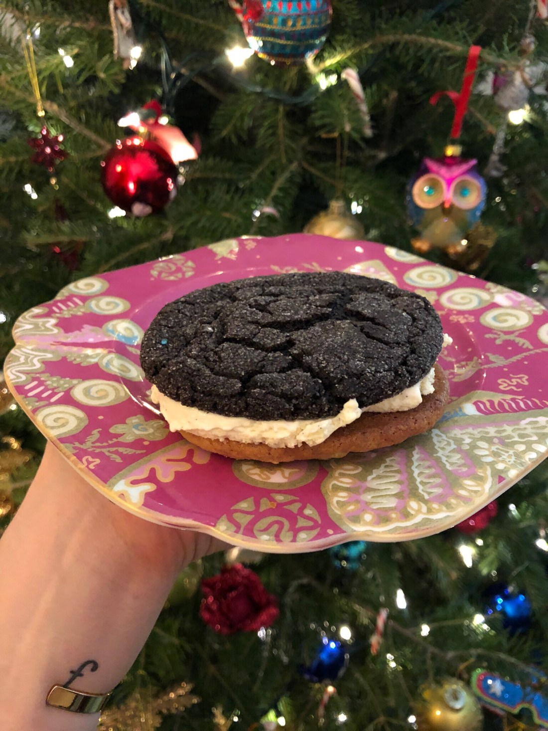For the snow day… black sweatshirt and tee, with a toque and leather jacket.
