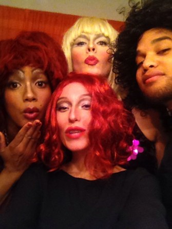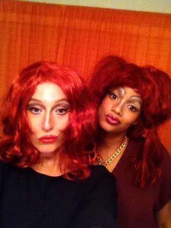 Besties? Felicia Fierce and Ivanna Trink. We had a whole whack of wigs to choose from. And sparkly outfits.