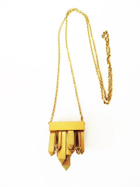 Some not-to-be-missed designs include the Herkimer diamond studs, enamel necklaces with tassels, geometric necklaces and cuffs in a variety of materials, and amazingly light 3D-printed jewelery in Stainless Steel, Matte Black, Brass or Sterling Silver with a brushed finish.